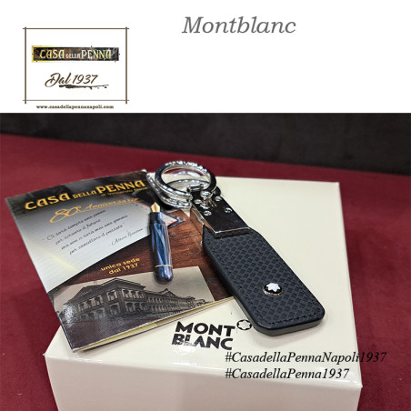 caratteristiche del prodotto: - produttore: Montblanc- modello: portachiavi- materiale: pelle lavorata con doppio gancio in metallo - dettagli: incisione Montblanc sui due ganci, forma rettangolare con emblema Montblanc- colore: nero
