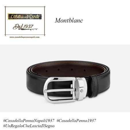 Montblanc cintura reversibile in pelle nera/marrone 30mm con fibbia a ferro di cavallo – art. 114412