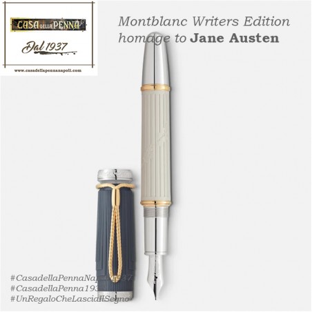 Pochi autori nella storia della letteratura hanno avuto la capacità di creare dialoghi e dare vita a personaggi con la stessa eleganza, ironia e astuzia dell’autrice britannica Jane Austen. Montblanc ha creato la Writers Edition Homage to Jane Austen per celebrare una delle autrici più famose della letteratura inglese. Questa edizione fa rivivere l’epoca della Reggenza, quando le nobili tenute di campagna erano teatro di grandi feste organizzate per coltivare le relazioni sociali e stringere alleanze matrimoniali. La scanalatura di una colonna classica impreziosisce l'elegante corpo in resina grigio arenaria, insieme alla firma di Jane Austen. Il cappuccio grigio-blu a contrasto richiama il tipo di cappotto Regency a doppio colletto tipicamente indossato da gentiluomini come Mr Darcy in Orgoglio e Pregiudizio. Gli anelli finitura oro sul corpo e i dettagli finitura platino apportano un tocco di stile finale al design. L’incisione dei numeri romani XLIII sull’anello del cappuccio fa riferimento al capitolo del romanzo in cui Elizabeth Bennet vede la tenuta di Mr Darcy per la prima volta. Il frontespizio del suo romanzo Ragione e sentimento, pubblicato nel 1811, si limitava a dichiarare che l’opera era stata scritta “da una signora”. Questa dichiarazione dell’autrice adorna la parte superiore del cappuccio della Writers Edition Homage to Jane Austen Edizione Limitata, insieme all’emblema Montblanc. La silhouette stessa dello strumento di scrittura ricorda un timbro di ceralacca. La clip è altrettanto singolare quanto il cappuccio. A forma di corda intrecciata con chiusura a coulisse, ricorda quella di un “reticolo”, un tipo di borsetta usata dalle donne intorno al 1800 per portare con sé la cipria, lo specchio e l’indispensabile fazzoletto da tasca. L’unica immagine nota di Jane Austen, che mostra i suoi lineamenti delicati, è immortalata come una raffinata incisione sul pennino in oro massiccio Au 750 finitura rodio e lavorato a mano.
