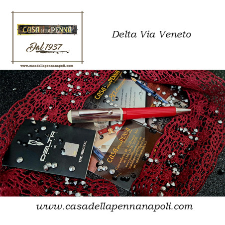 Raffinata penna stilografica Delta della linea Via Veneto con corpo realizzato a mano in resina naturale tornita da blocco unico, con elegante clip in metallo armonico rodiato, particolarmente flessibile. Di impugnatura comoda nonostante la generosità delle dimensioni. Dotata di cappuccio avvitabile con apice ed anello in caseina.